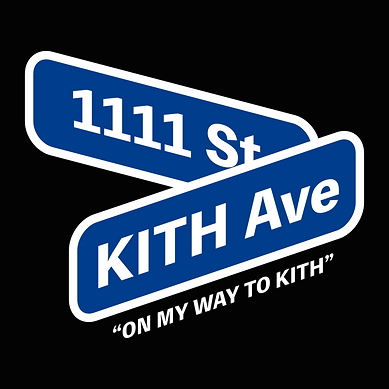 – Front: Iconic blue street signage in stacked layout with “ON MY WAY TO KITH”